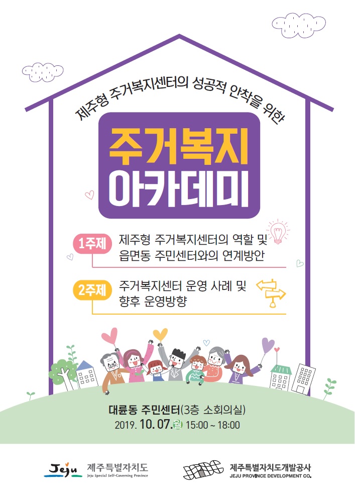 제주특별자치도 주거복지센터(서귀포시권역)에서 '2019 주거복지 아카데미'를 개최합니다